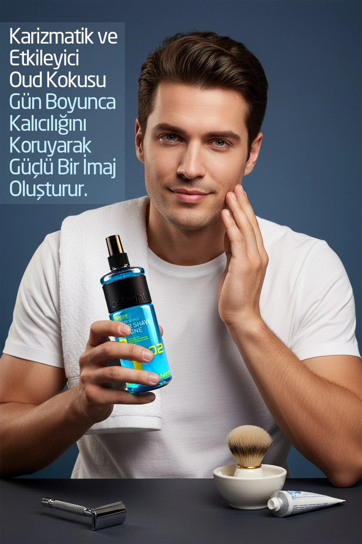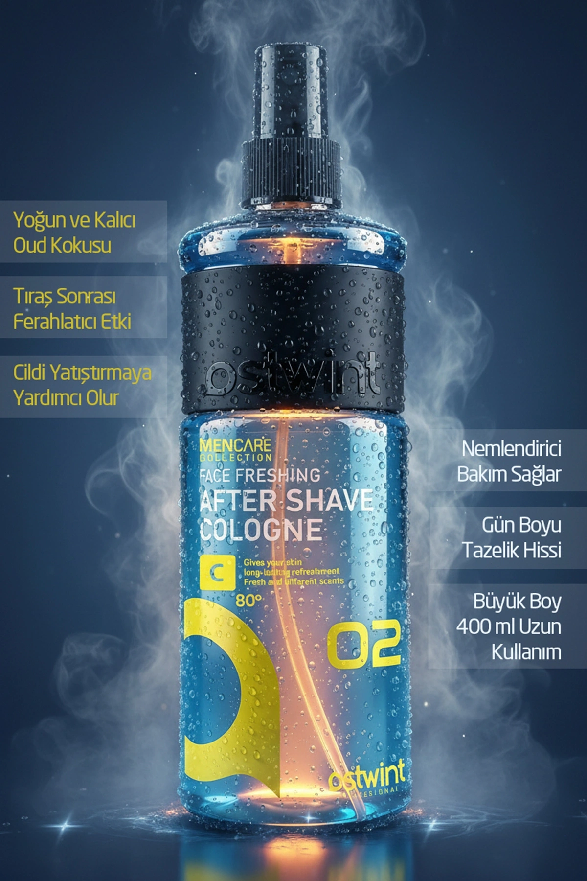يحتوي على رائحة العود المعطر. إنه مصمم لتطهير البشرة المحلوقة حديثًا بعد الحلاقة. يسمح للجروح الصغيرة بالشفاء بسرعة.